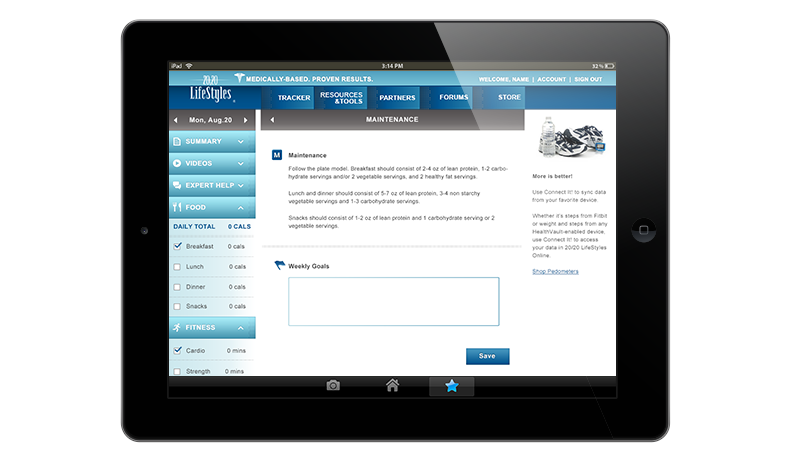 For the 2020 Lifestyles weight-loss program, the online Health Tracker is vital for the success of its participants. The app, which tracks diet and exercise, was completely re-designed to family with the new 2020lifestyles.com, with versions designed to work on multiple devices and operating systems.