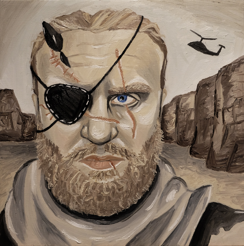 Ryan as Snake (Metal Gear Solid V: The Phantom Pain), oil paint on canvas, 12 x 12 inches (2016)