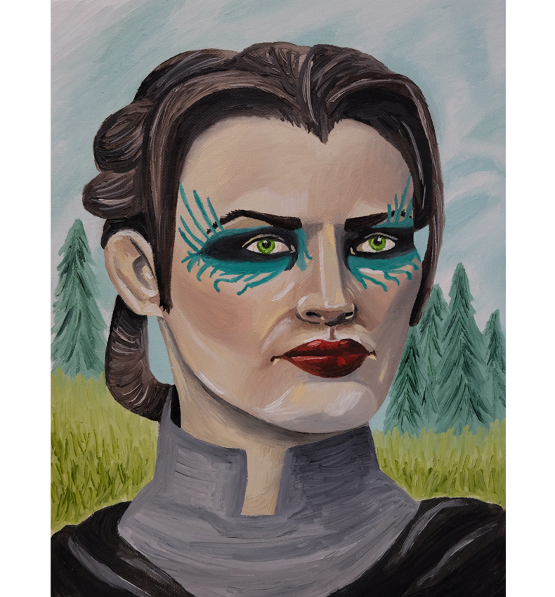Pathfinder Ryder (Mass Effect Andromeda), oil paint on canvas, 12 x 12 inches (2017)