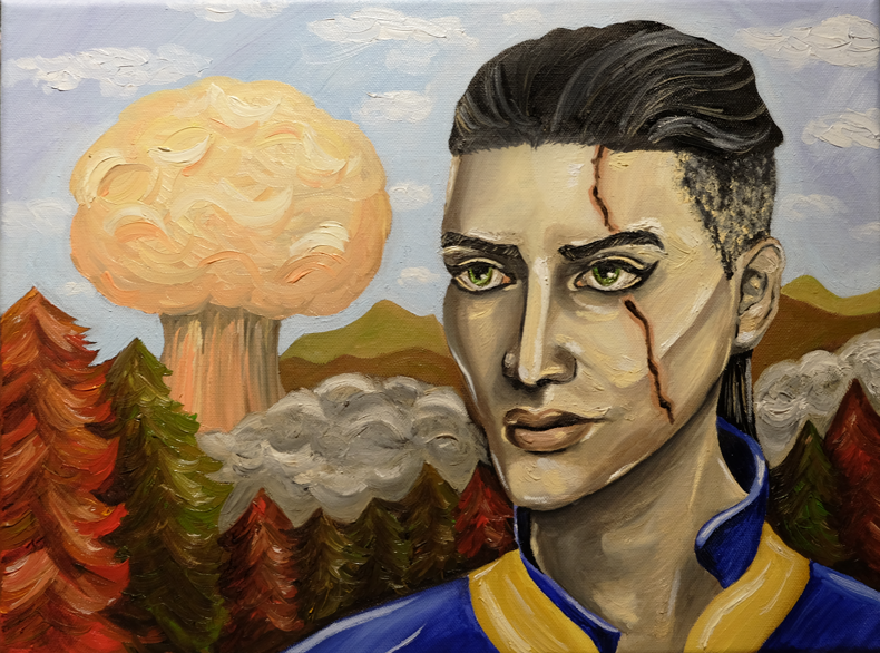 Appalachian Wanderer (Fallout 76), oil paint on canvas, 12 x 16 inches (2019)