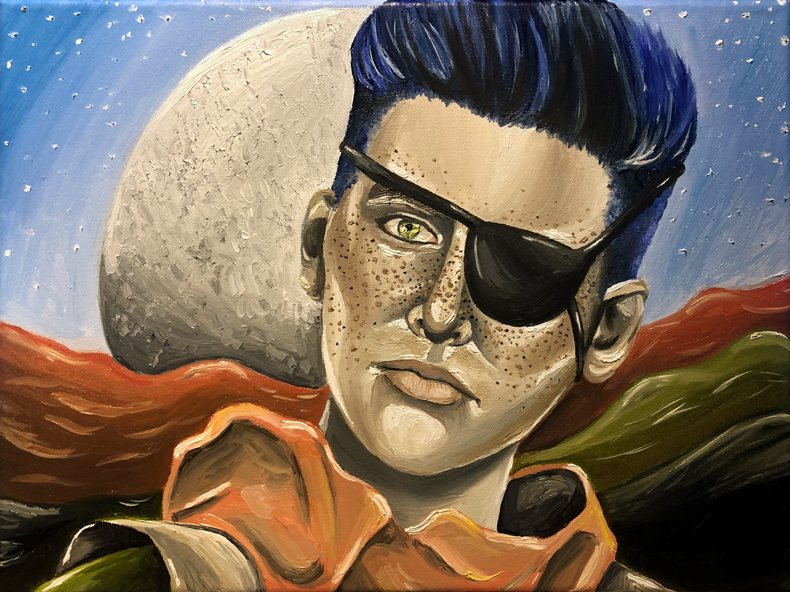 Captain Alex Hawthorne of the Unreliable (The Outer Worlds), oil paint on canvas, 12 x 16 inches (2019)