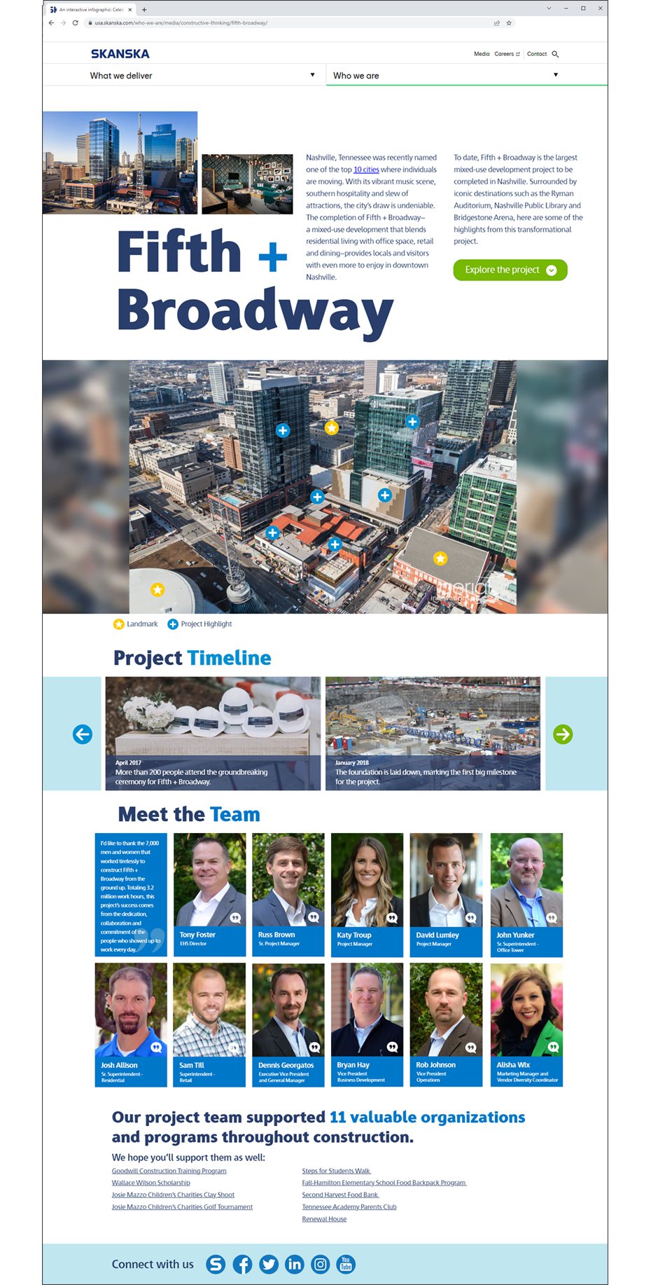 A collection of Skanska USA interactive infographics I created using Ceros. In order of appearance: